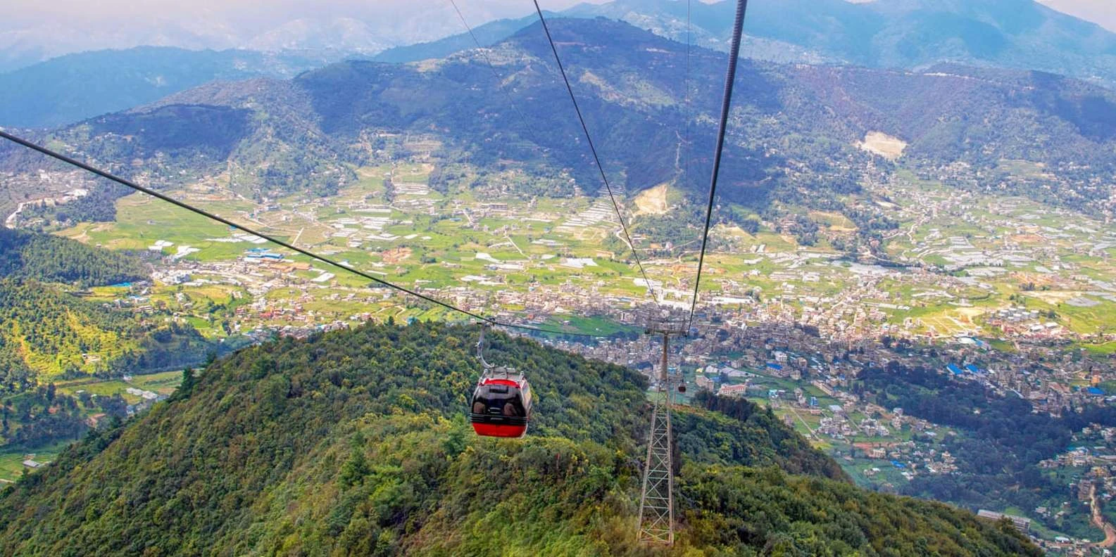 Chandragiri Hill is a popular tourist destination in Kathmandu, Nepal, offering panoramic views of the Himalayas, including the Langtang, Ganesh, and Everest ranges, as well as the Kathmandu Valley. To reach the top of Chandragiri Hill, a cable car ride is the most convenient way. The modern and safe system takes approximately 10–12 minutes to reach the top, offering stunning views of lush green hills, terraced fields, and the bustling cityscape below. Upon reaching the top, visitors can explore the surrounding area, including a viewpoint tower, Baleshwar Mahadev Temple, a restaurant, picnic spots, and walking trails.